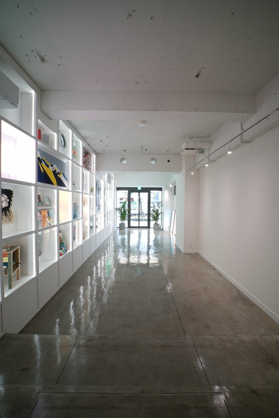 まず、事業主の「ART×WORK」というコンセプトを受け、簡易宿所から事務所への用途変更における遵法性の確認(確認申請不要)を実施、設計を進めていきました。事業主のデザインとアートディレクションの意図を汲み取り、引き立てるデザインを大切にしながらインテリア・什器をコーディネート、VI・サイン計画を進めました。まるでギャラリーのようなセットアップスモールオフィスを実現し、周辺相場を上回る賃料実現に貢献しました。