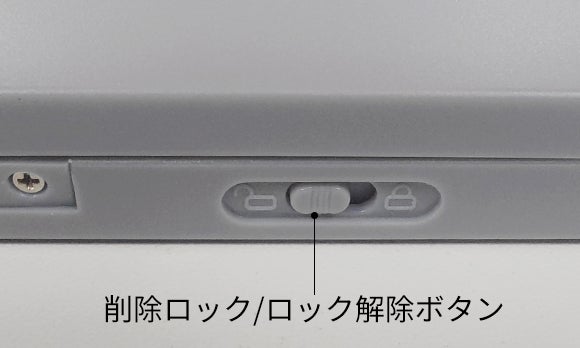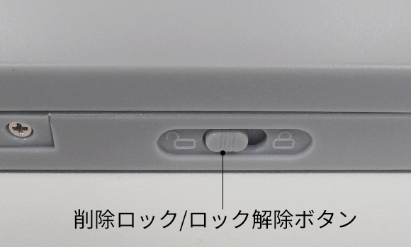 本体の下側に削除ロック/ロック解除ボタンがあります。