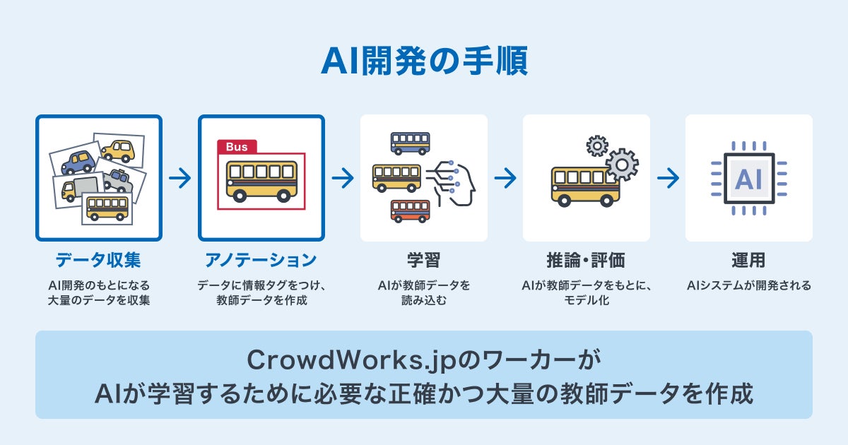 企業と個人をつなぐオンライン人材マッチングプラットフォームを開発・運営する株式会社クラウドワークス(本社:東京都渋谷区 代表取締役社長 兼 CEO:吉田 浩一郎 以下「当社」)は、「AI教師データ作成代行サービス」を開始いたします。