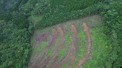 一方で国土交通省の調査によると約58%の森林所有者が維持管理の経済的負担や後継者不足などを理由に所有権を手放したい意向を示しています※3。しかし所有権や境界の不明確さ、小規模で分散した森林の存在などが障壁となり、事業者による買い取りの難しさにつながっています。所有者が自ら再植林しようとしても植林前の地拵え(じごしらえ)作業、苗木代、苗木の運搬と植え付け、下刈り作業などを含む再造林初期費用を木材販売の収入で賄えず、結果として管理を放棄せざるを得ないケースが全国的に増えています。 鹿児島県は民有林※4の造林面積が北海道、宮崎県に次いで全国第3位※5でありながら、錦江町でも全国的な傾向と同様に再造林が計画的に進まない森林が拡大しています。