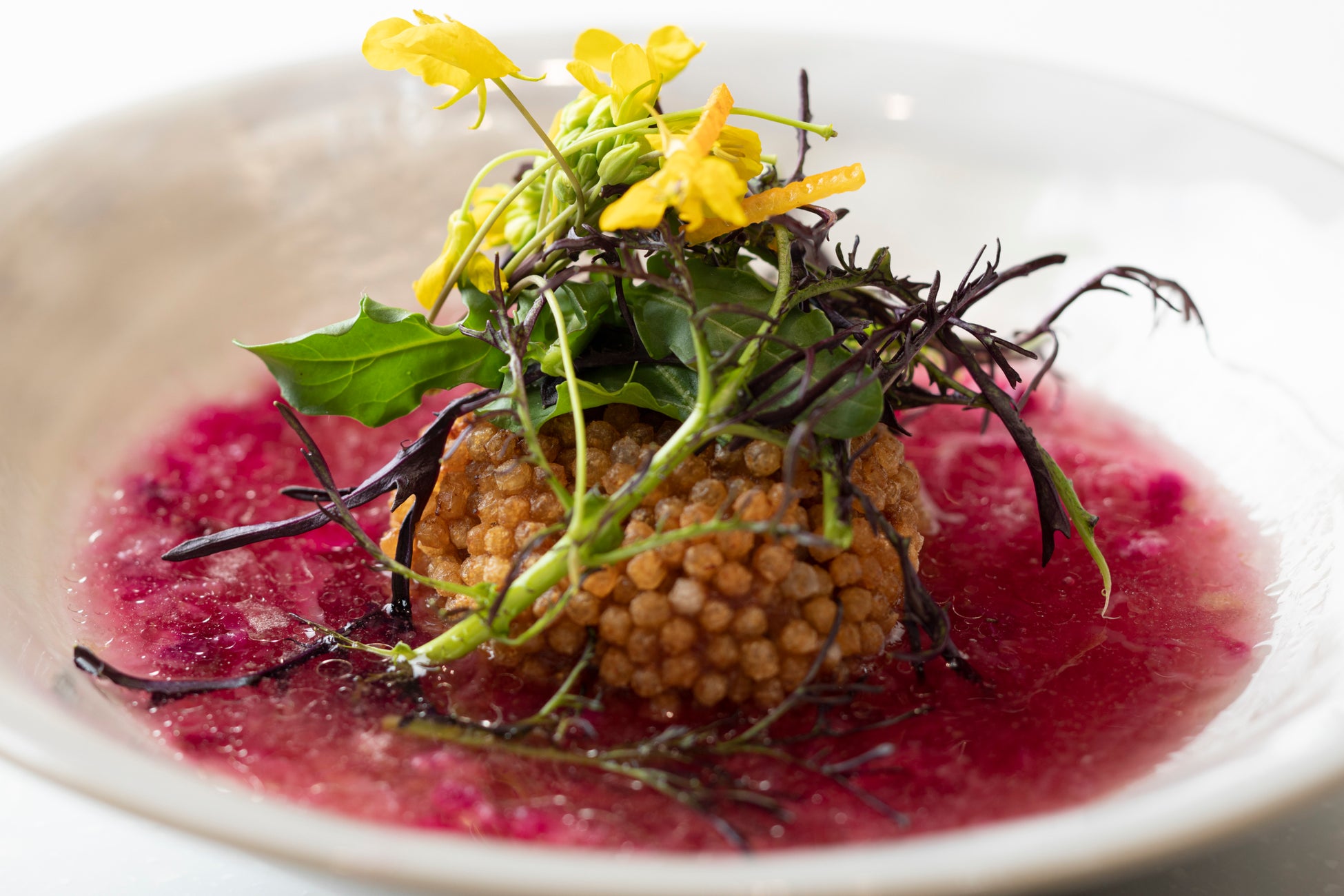 千葉県の根菜とイノシシのカネロニ仕立て 味噌風味の赤ワインソース