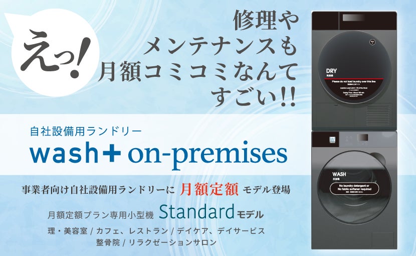 株式会社wash-plus(本社:千葉県浦安市、代表取締役:高梨健太郎)は、事業者向け自社設備用ランドリー「wash+ on-premises」の月額定額料金モデルの販売を開始しました 。