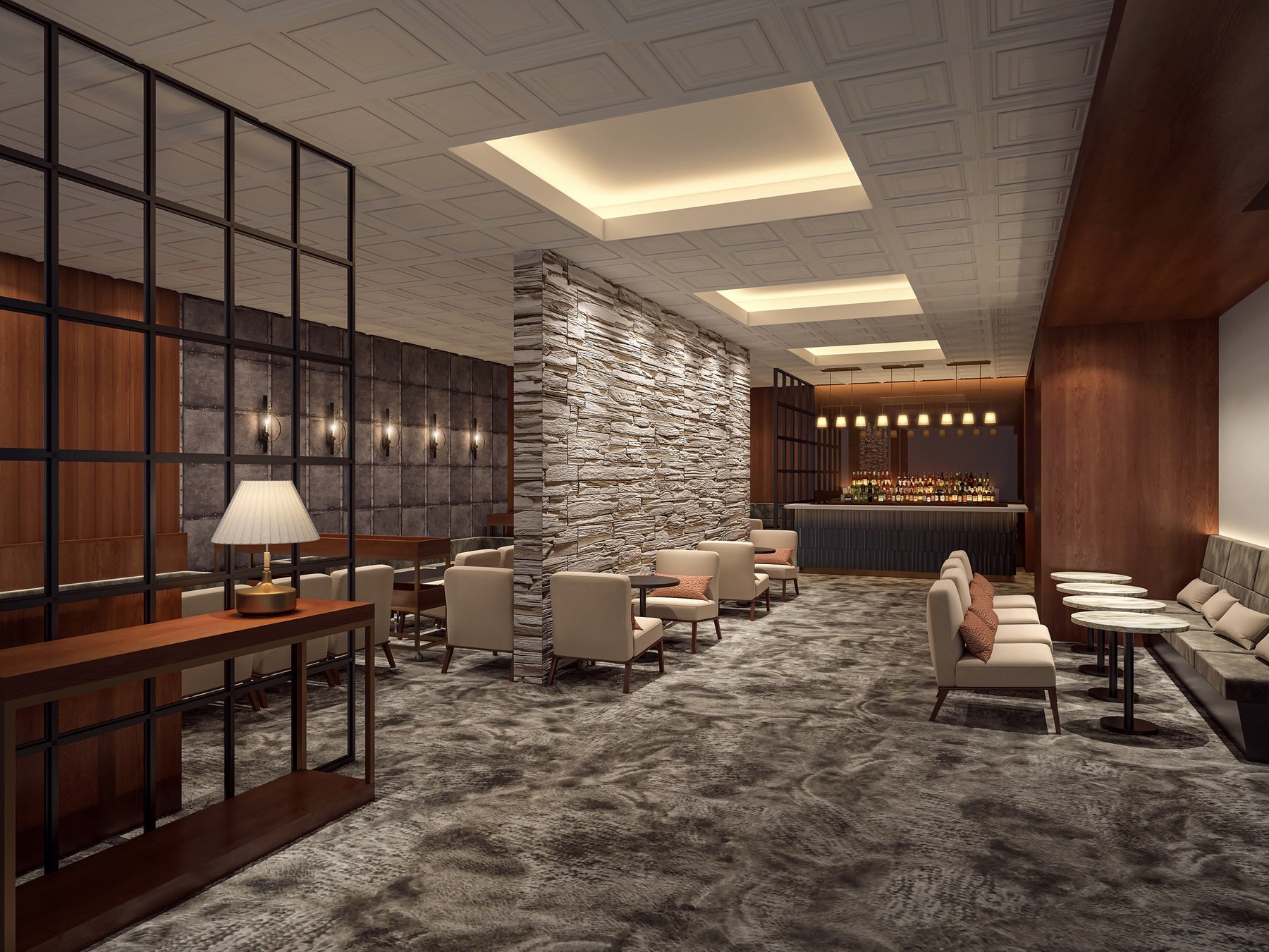 各国の職人が丹精を込めて仕上げたソファや、木目と石材が際立つラウンジで、都会の喧騒の中にある、