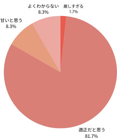 アイフルの審査基準については、「適正だと思う」人が81.7%で最も多く、「甘いと思う」人も8.3%いた。