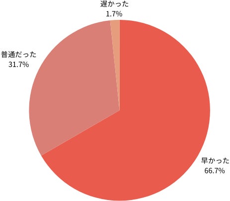 アイフルの審査のスピードが「早かった」と回答した人が66.7%で最も多く、反対に「遅かった」と答えた人は1.7%とわずかだった。
