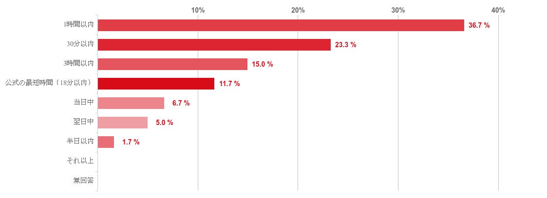 アイフルの審査結果が通知されるまでの時間は、「1時間以内」が一番多く、次いで「30分以内」「3時間以内」という順となった。