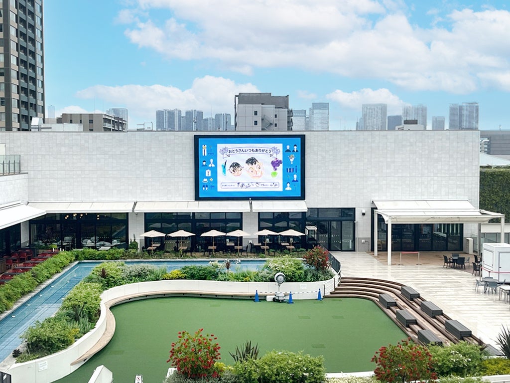応募していただいた似顔絵を有明ガーデン館内の大型ビジョンで放映します。さらに、抽選で25名様に賞品をプレゼントいたします。