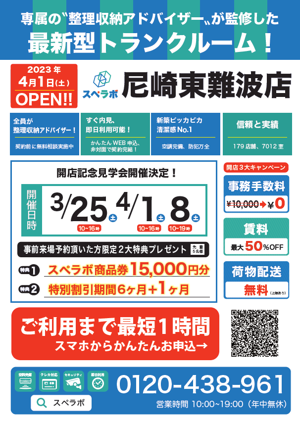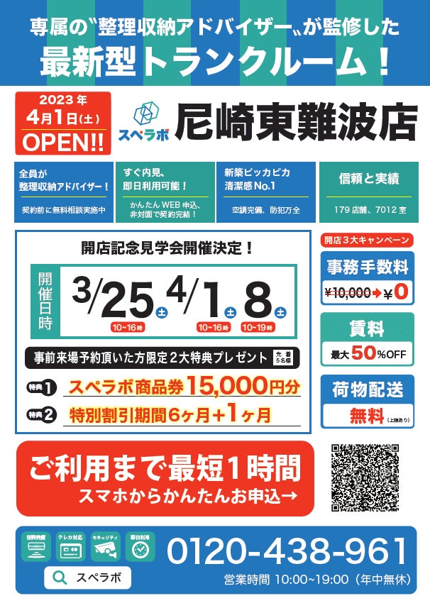 【尼崎東難波店/4月1日(土)オープン】見学から契約、解約まで完全非接触・非対面、お申し込みからご利用まで最短1時間!都内、大阪などにて絶賛運営中のトランクルーム【スペラボ】が尼崎駅近くに出店!