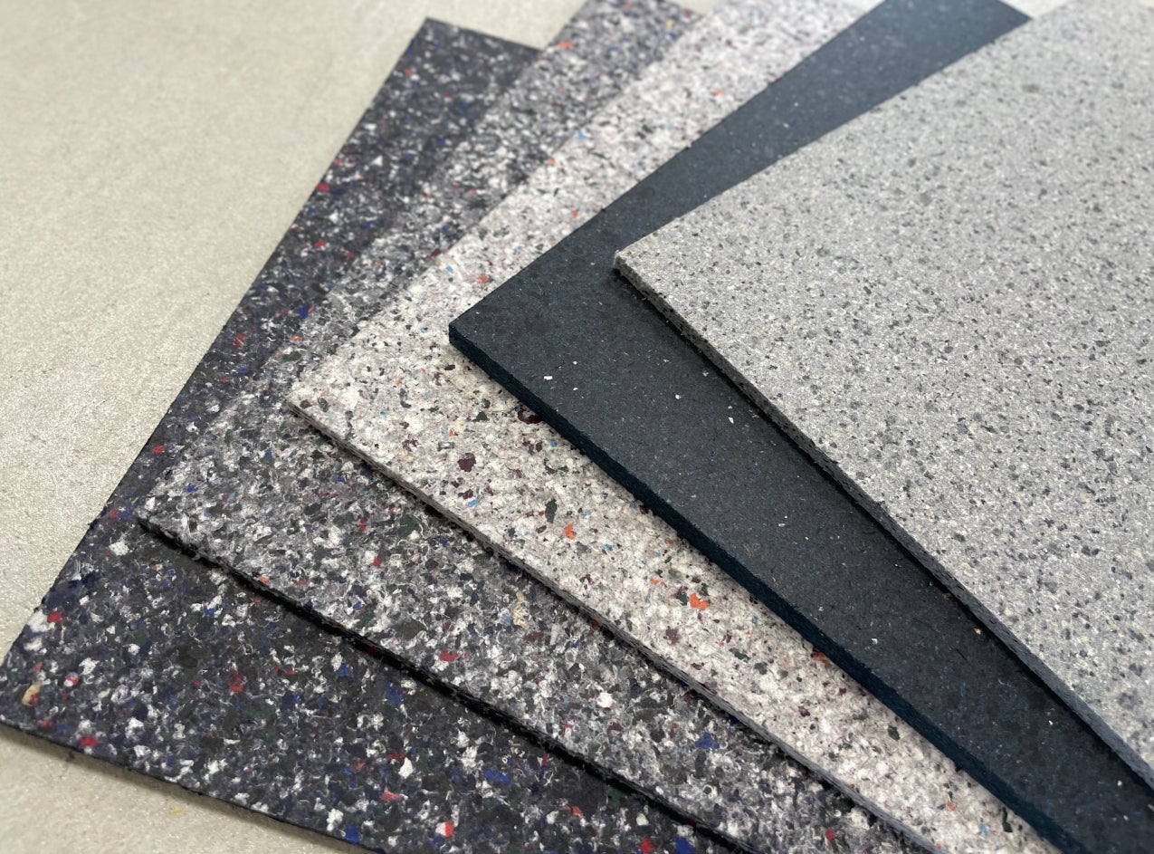 ⾐類繊維を原料とし、生地だけでなく衣類含まれるさまざまな繊維をアップサイクルすることができる循環型繊維リサイクルボード。