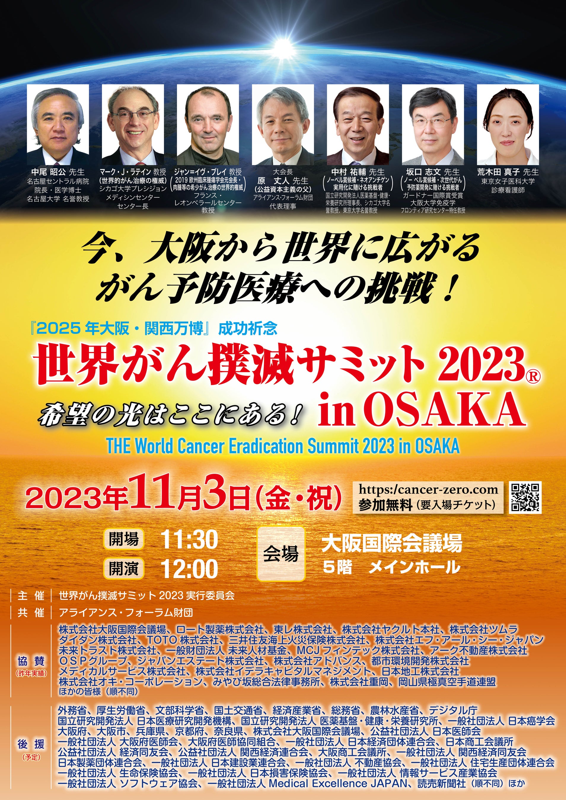 詳細は世界がん撲滅サミット2023 in OSAKA公式HP(https://cancer-zero.com)にてご確認いただきたい。