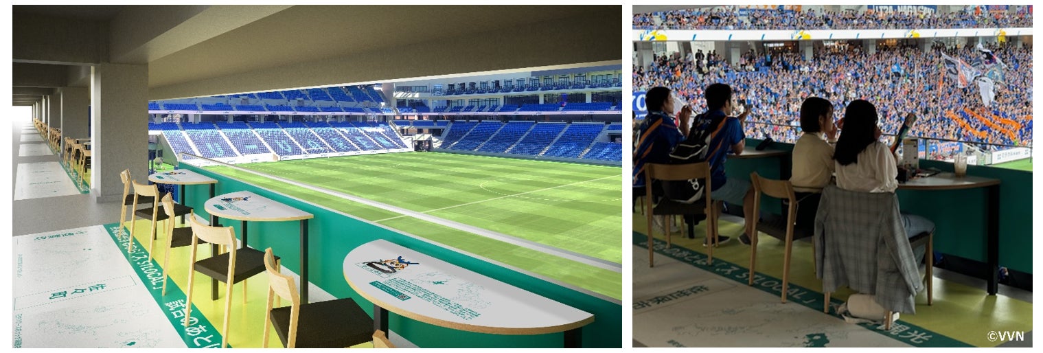 テーブル付きペアシート24卓(48席)を設置。より快適にサッカー観戦を楽しんでいただける特別な空間の提供を目指します。