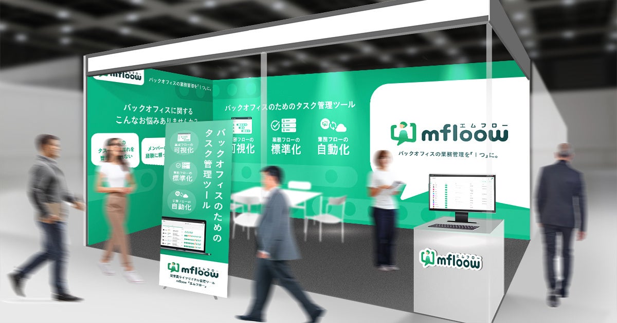 会場ブースでは、「mfloow」の実際の画面を見ながらデモ体験が可能です。「mfloow」による業務のデジタル化を提案します。