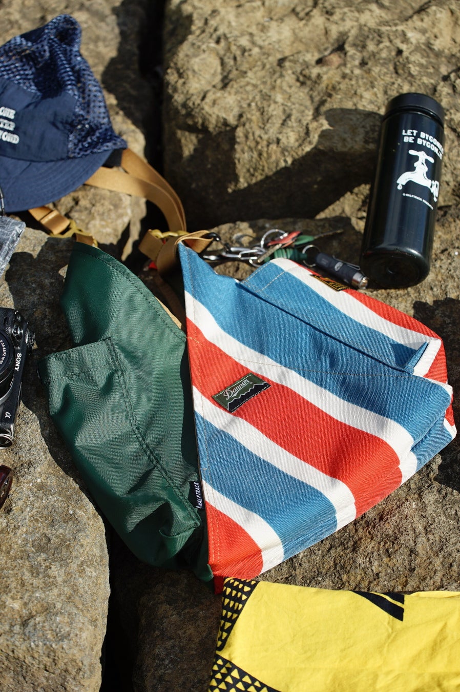 日本の伝統的なあずま袋をモチーフにHALE TRUCK PRODUCTSとNATAL DESIGNの共作で制作された三角型のバッグ、[+u small」。Dannerのロゴを配したDANNER CAMP‘23特別仕様です。