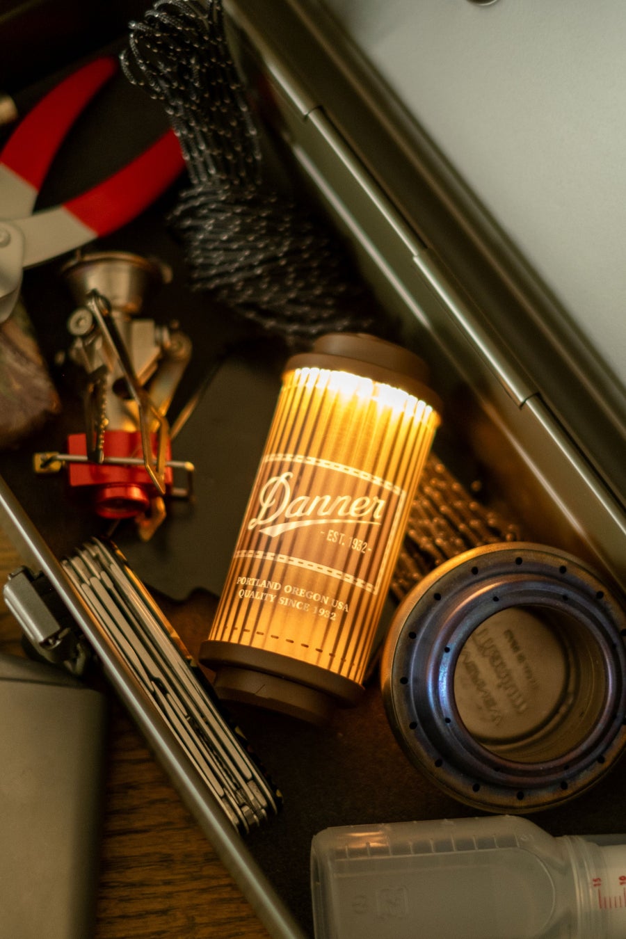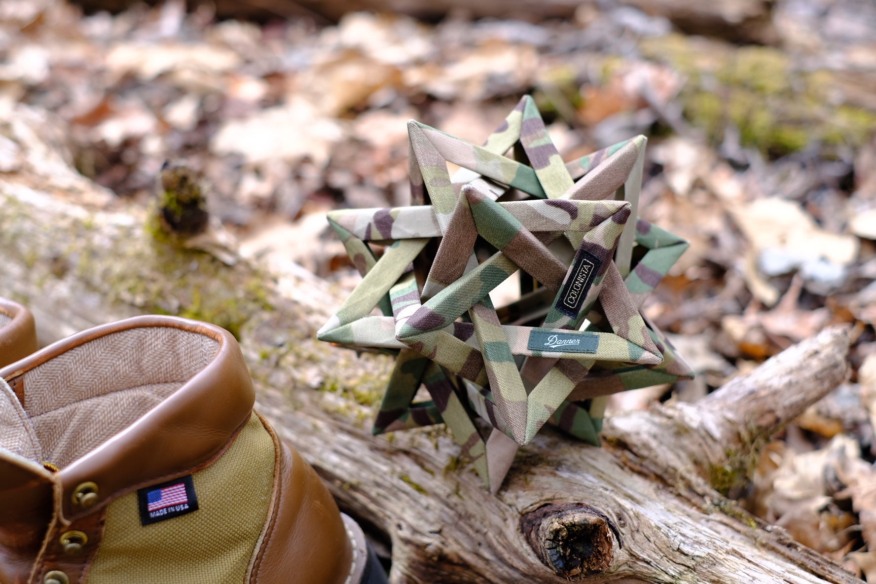 小型LEDライト、ランタンに対応したランタンシェードで、素材は撥水、防水性のあるX-PACを使用。軽量性と高い強度を誇り、アウトドアでの使用にも適しています。Dannerのミリタリー要素を表現したカモフラージュ柄を採用したモデルが復刻で登場。