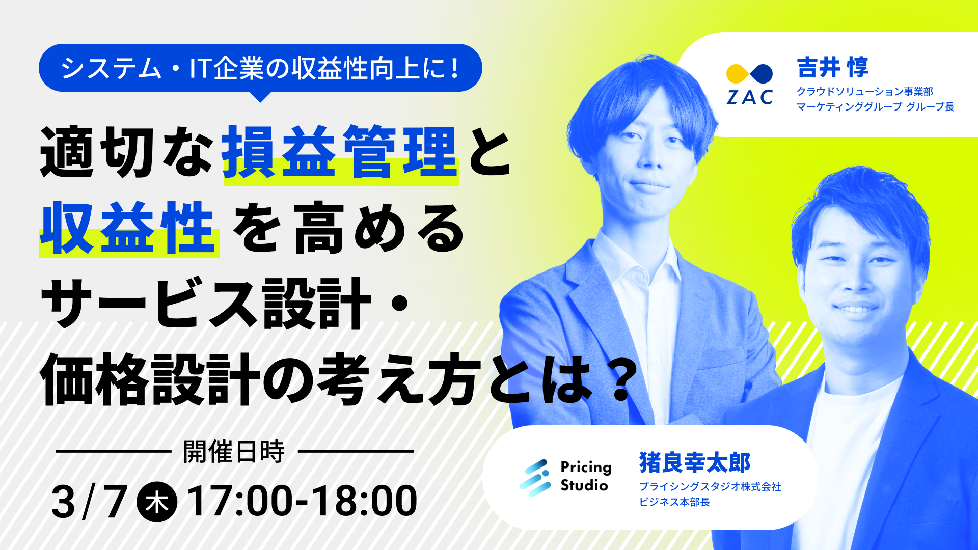 WEBセミナー:「システム・IT企業の収益性向上に! 適切な損益管理と収益性を高めるサービス設計・価格設計の考え方とは?」