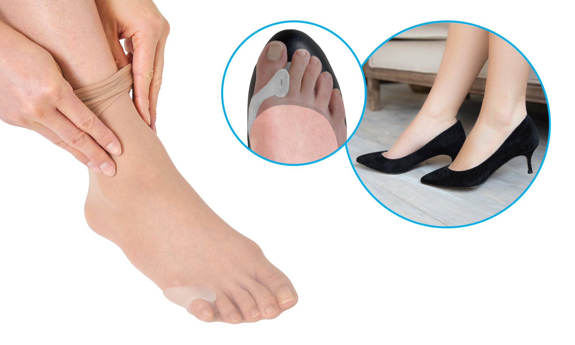 上から靴下やストッキング等を履いてもずれにくく、薄型で指に付けたままパンプスも履けます。