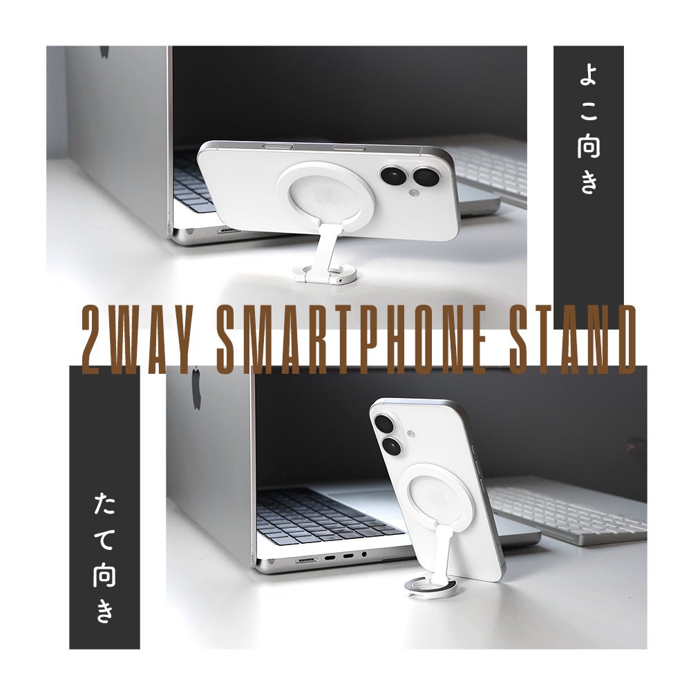 リング部分をスタンドとして、スマートフォンを縦向きでも横向きでも使用できます。