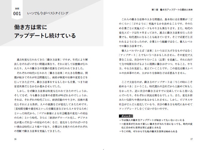 時代遅れの行動や残念な行動に変わる働き方や仕事の進め方を提示。働き方を【アップデート】する100の法則をまとめた1冊