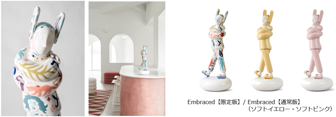 ⾃分⾃⾝を抱きしめているチャーミングなポーズの新キャラクター「Embraced」は、「“Self-Care” 自分自身を大切にする、自分を愛する」がコンセプト。ハイメ・アジョンは、ポーセリン(磁器)の素材を生かし、リヤドロの特徴である唯一無二のハンドクラフトのノウハウを最大限に反映させ、遊び心溢れるカラーを加えて、ポーセリンアートの創造性の豊かさを追求しました。
