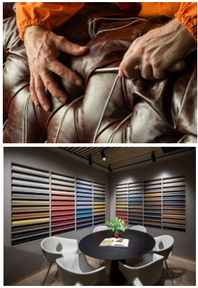 独特な柔らかさを持つ最高級の革「ペレ・フラウ」は、厳選された上質な仔牛の皮を丁寧に加工し、厳格な品質管理を経て生まれます。やわらかく肌に馴染むこの革は、曲線を表現するのに最適。この革があってこそ、ポルトローナ・フラウ社の“家具芸術”なのです。