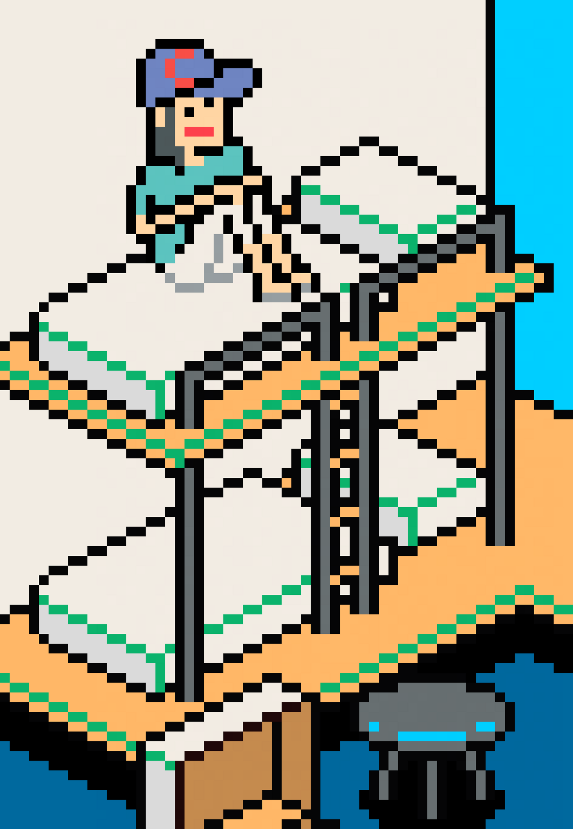 当ホテルは、2023年から継続的にピクセルアーティストとのコラボ企画を展開し、宿泊者の皆さまやカフェ利用の方々の体験価値を高めてきました。今年は「e-People展 by eBoy | sequence MIYASHITA PARK」と題し、ミヤシタパークの「人」にフォーカスを当て、ミヤシタパークを利用する人々の「日常」を切り取ったピクセルアートを「VALLEY PARK STAND(ヴァリー・パーク・スタンド)」に展示いたします。期間中、ホテルエントランスとカフェエリアの「VALLEY PARK STAND」が、数々のピクセルアートで彩られ、eBoyの世界観に包まれる空間に。本展示では客室やDJライブなどホテル内の様々なシーンを表現したピクセルアートでsequence MIYASHITA PARKの魅力をお楽しみいただけます。