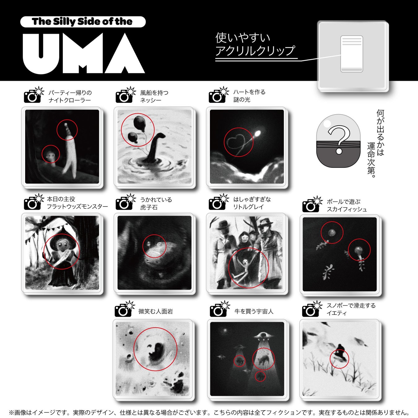 UMA、それは未確認生物、そして我々人間のロマン。遭遇してしまったけれど、思わず「あれっ?」と首を傾げてしまうようなシーンを集めたアクリルクリップを、ガチャガチャ形式でお届けします!