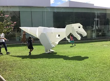 ■内容:「工房ヒゲキタ」様による段ボールでミニ恐竜を作るイベントと、お散歩着ぐるみ外骨格恐竜「うちのシロ」と一緒に店内を散歩するイベントです。