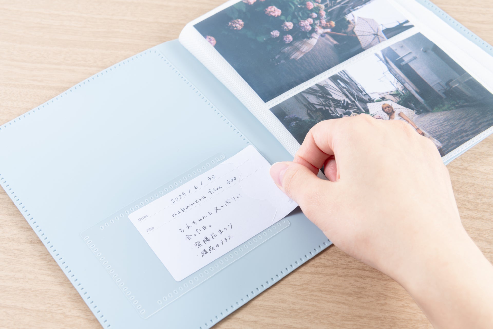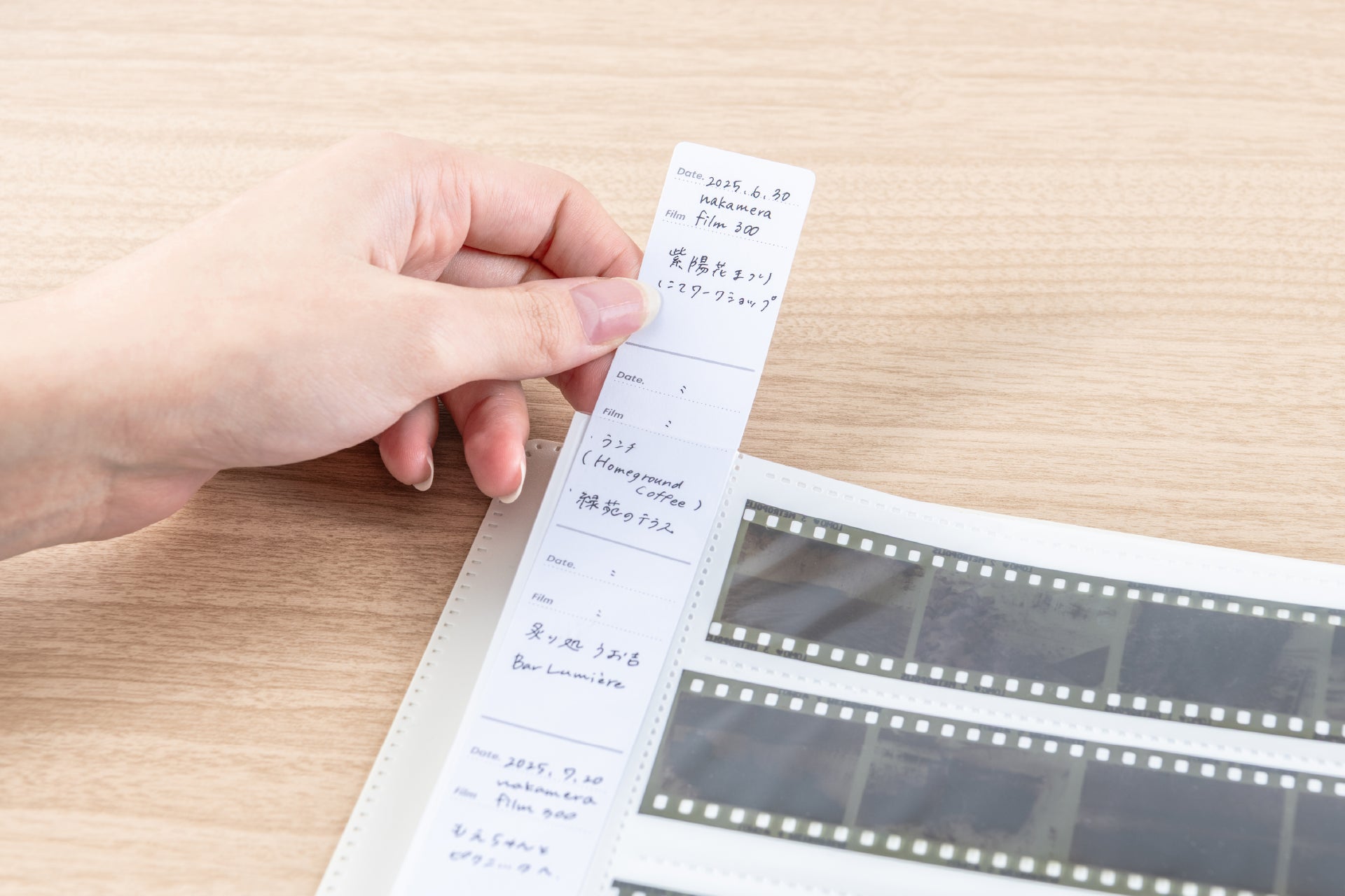 全てのシリーズに、撮影日、撮影に使用したネガフィルムの詳細、メモができるタイトルカードがセットになっています。ネガナアルバムには各ページにタイトルカードが付属しているため、データがわかりにくいネガフィルムの整理に便利です。