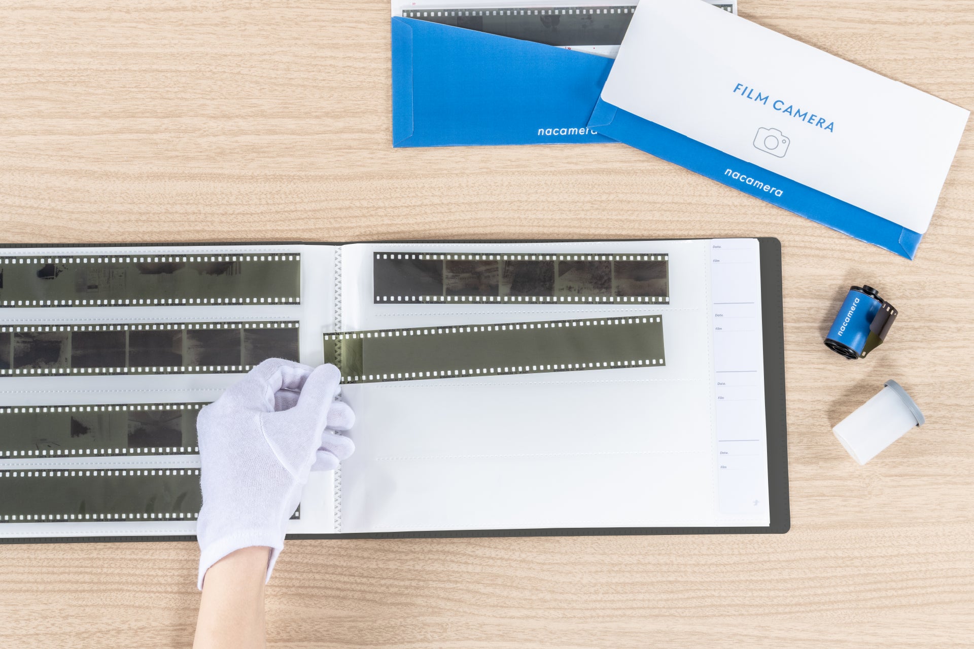 普段撮影した写真をアルバムにしない方も、フィルムカメラで撮影した写真を現像すると、ネガフィルムが現物として手元に残ります。そんな方には、ネガフィルムをまとめて保管できるネガナアルバムがおすすめです。24枚撮りフィルムなら約22本分、36枚撮りフィルムなら約16本分のネガフィルムをたっぷり保管できます。