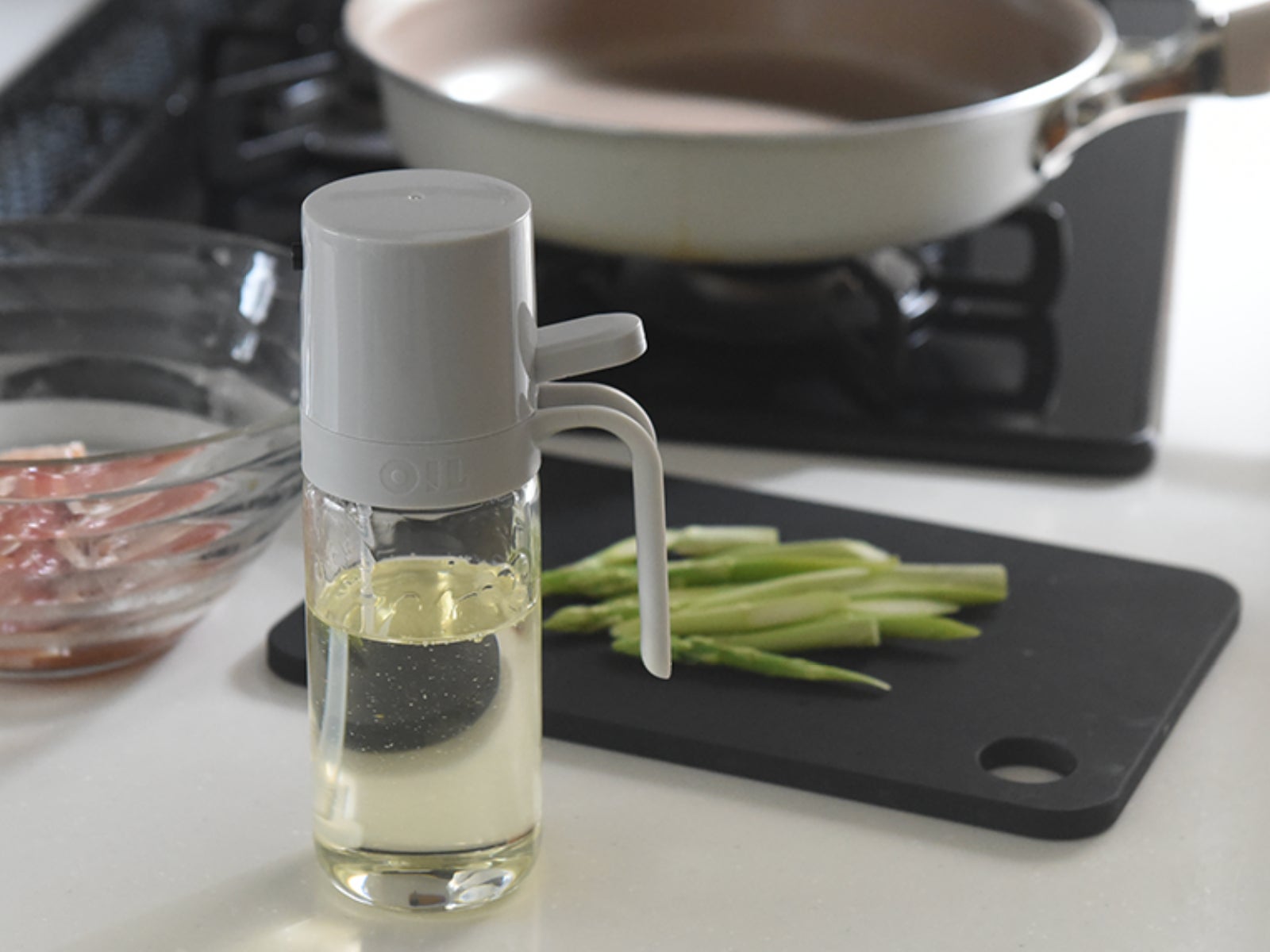 コンロの周りに常に置いておきたいオイルスプレーボトル。だからこそ、景観を邪魔しないシンプルなカラーでつくりました。