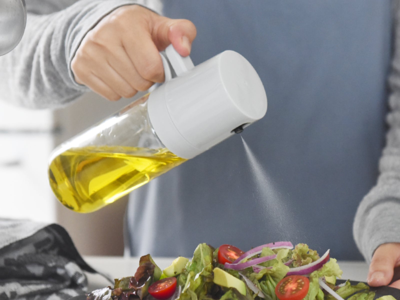 少ない油でヘルシーに。毎日の脂質量を減らせる、アンジェ別注「オイルスプレーボトル」が登場!スタイリッシュな「ライトグレー」はアンジェだけ。