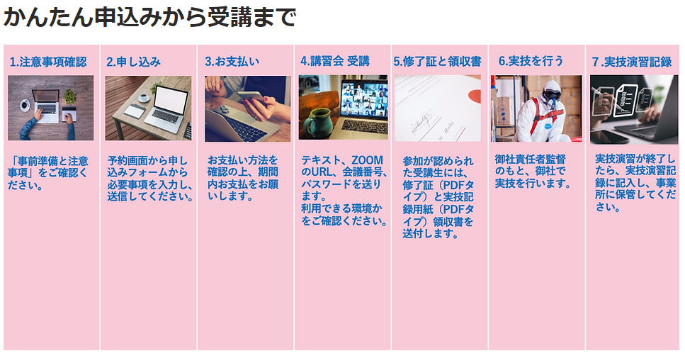 今までの講習は大都市などの中心部などの会場が多く、会場まで通うのに時間や交通費が無駄という方、大人数での会場は感染リスクで不安という方もかなり多いのも事実です。