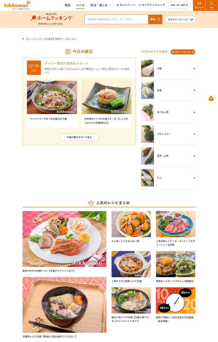 キッコーマンはこれからも、お客様の生活を豊かにし、心身の健康を応援するレシピや情報をさまざまなプラットフォームを通じてお届けしてまいります。