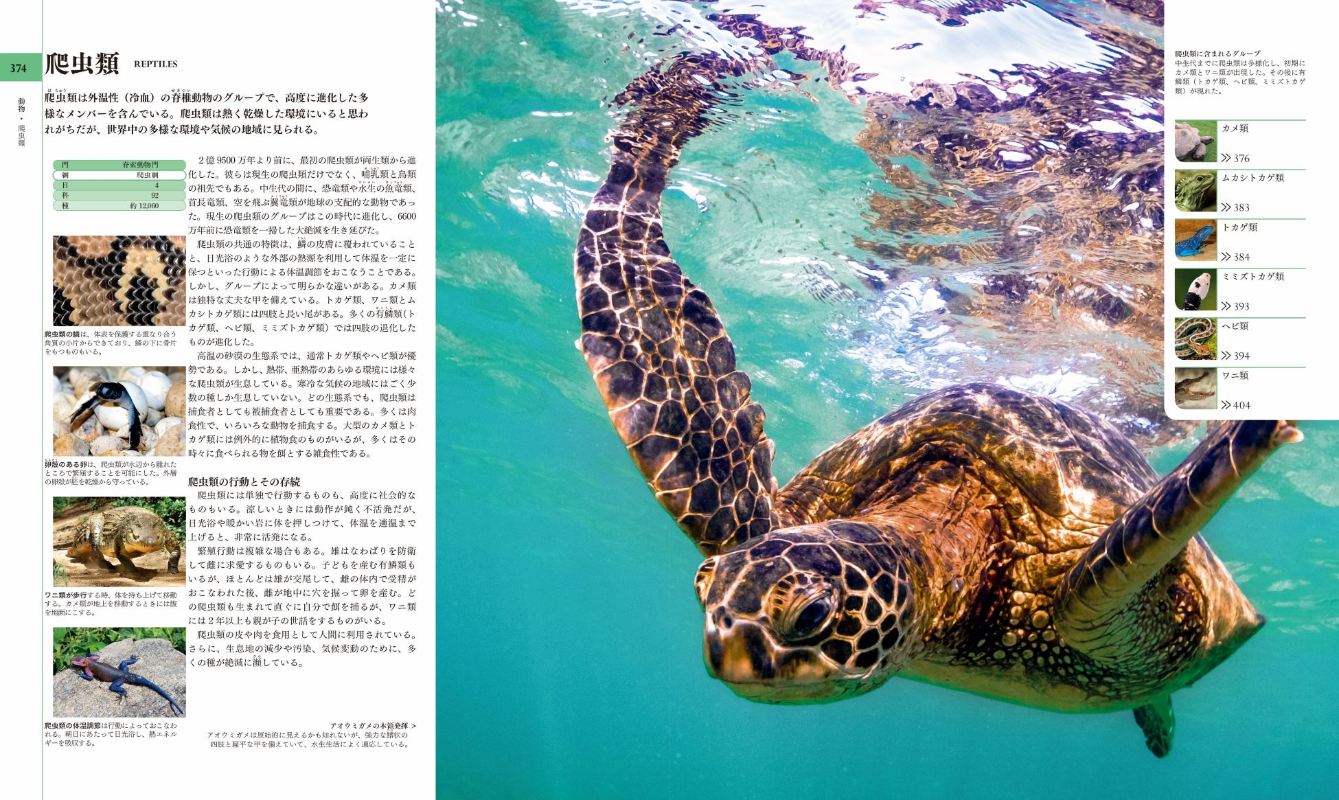 鉱物・岩石・化石から、微生物・菌類・植物・動物にいたるまで、あらゆる分野を網羅しながらも、生命の多様性を美しいカラー写真とともに詳細に解説。主役級の生物の写真はクローズアップしたレイアウトで、迫力満点。まさに「地球博物学」の名にふさわしい図鑑といえる。