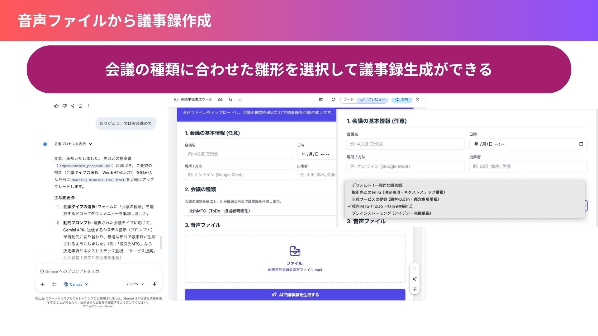 コード作成から議事録、動画分析まで、生成AIでできることの幅広さに圧倒され、明日から試したくなりました。