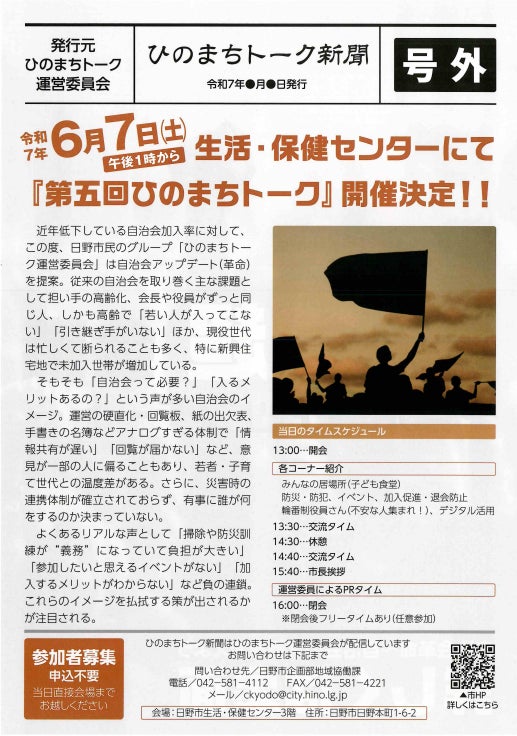 ぜひ「ひのまちトーク2025(自治会交流会)」を取材いただきますようお願い致します。