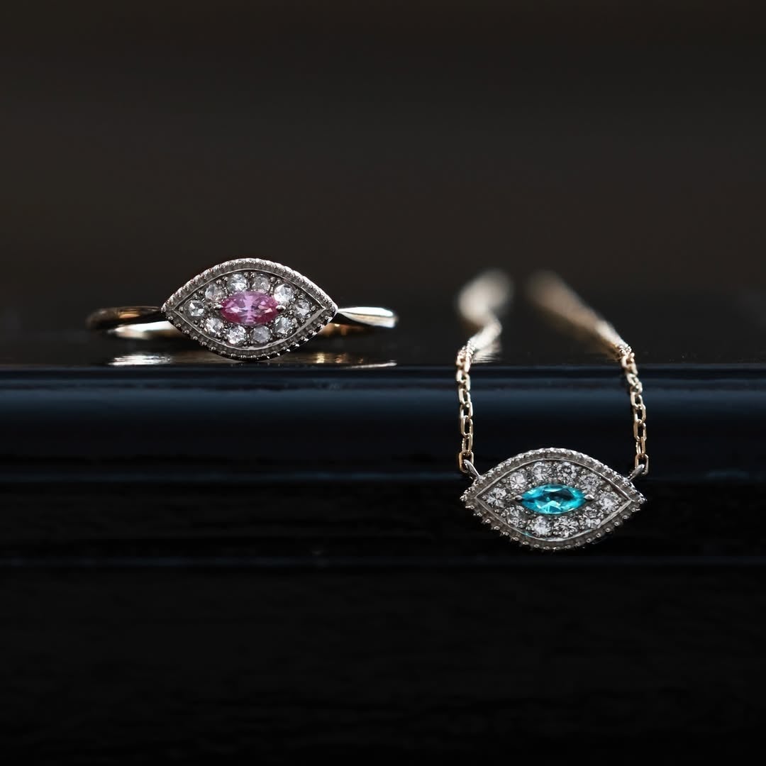 ラインナップはリングとペンダントの2タイプ。用いる色石によって印象が変わり、それぞれが異なる表情をもたらします。「千の微笑み」の名を持つこのジュエリーが、手にした方の心に静かな温かみを添えます。