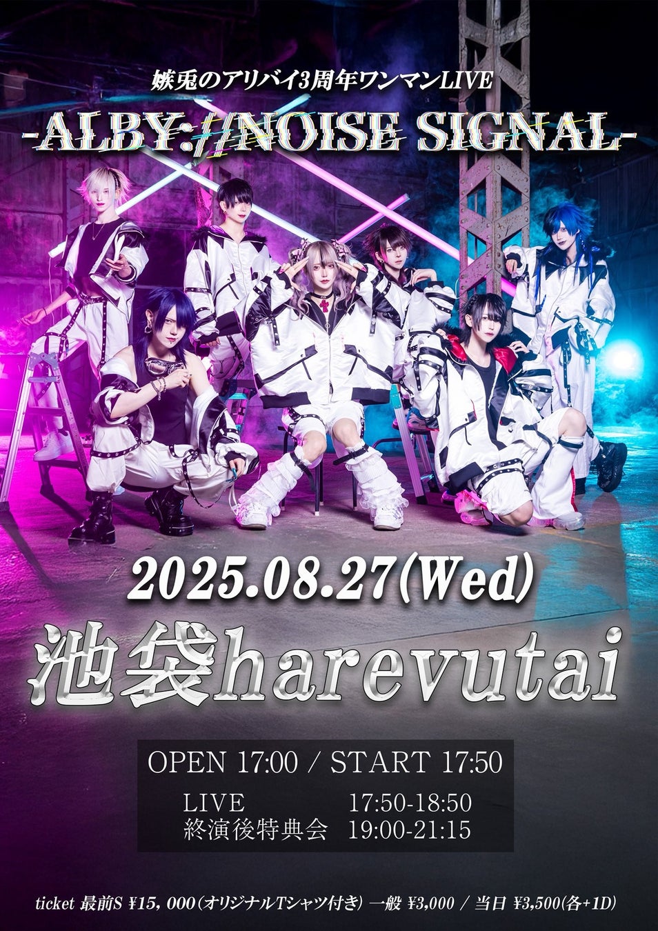 【メンズアイドル「嫉兎のアリバイ」3周年ワンマンライブ開催決定!】8/27池袋harevutai「ALBY://NOISE SIGNAL」メンズアイドルシーンの注目株が記念公演