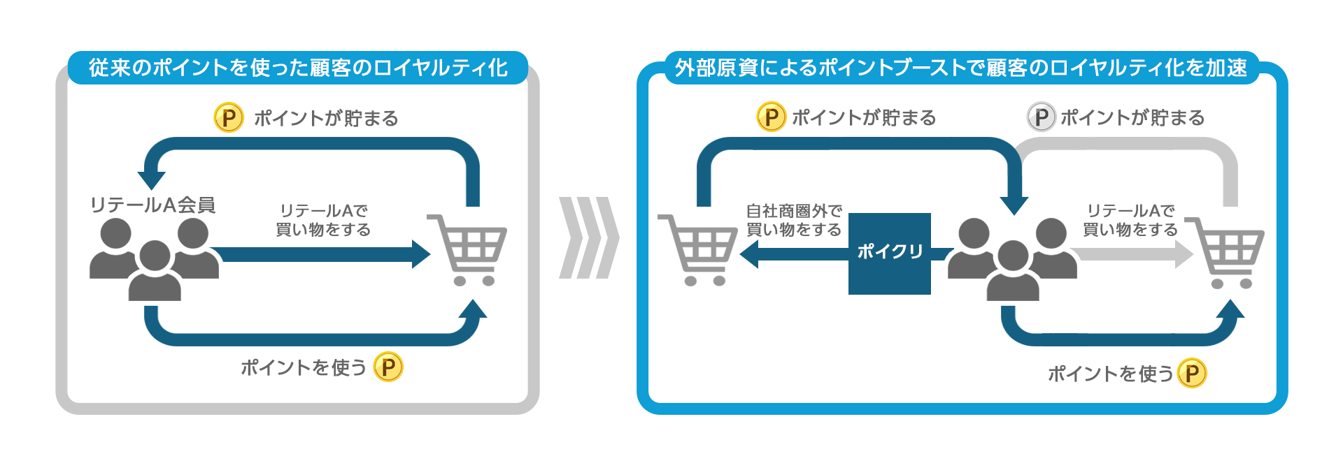 リワード広告はポイント還元を通じてユーザーを自社ECの再訪・再購買へ戻す導線を持つため、外部送客による機会損失を抑えながら広告収益を確保できます。広告収益をそのままポイント原資に充当することで、追加コストなくCRM施策を展開できます。