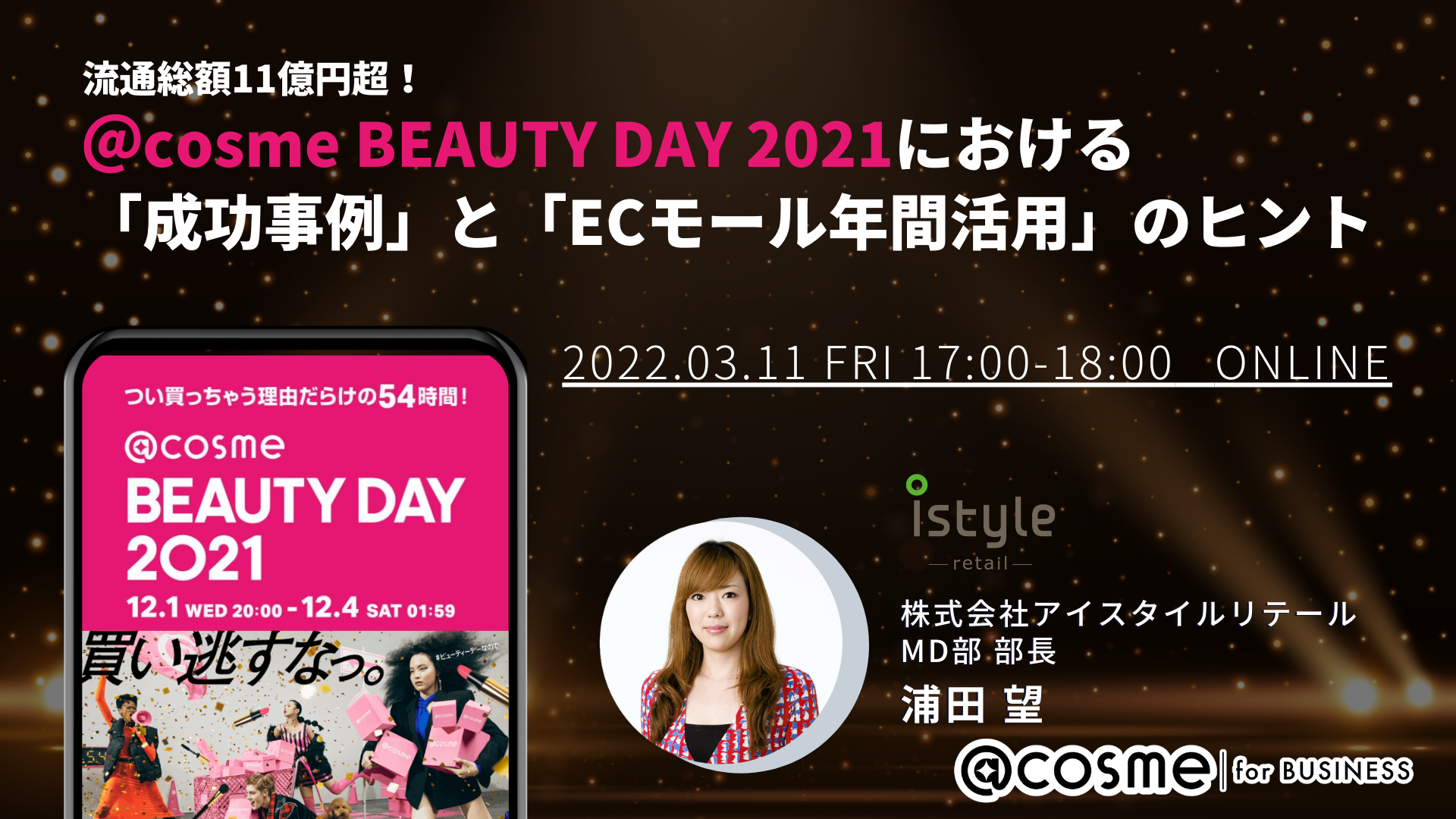 ウェビナー「流通総額11億円超!【@cosme BEAUTY DAY 2021】における成功事例とECモール年間活用のヒント」 3月11日開催