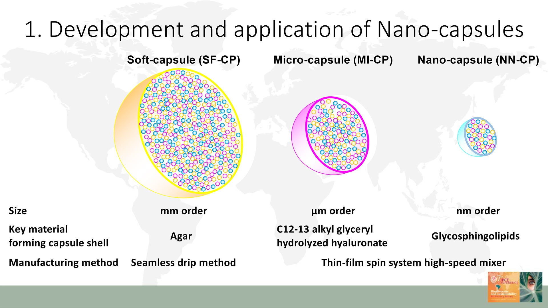 イタリアのヴェネツィアで開催SICC(イタリア化粧品技術者会)にて複数カプセルの組み合わせによる皮膚浸透促進・効率的なデリバリー技術がIPCE大会に選出され、日本初3つのナノカプセル技術を講演し称賛。