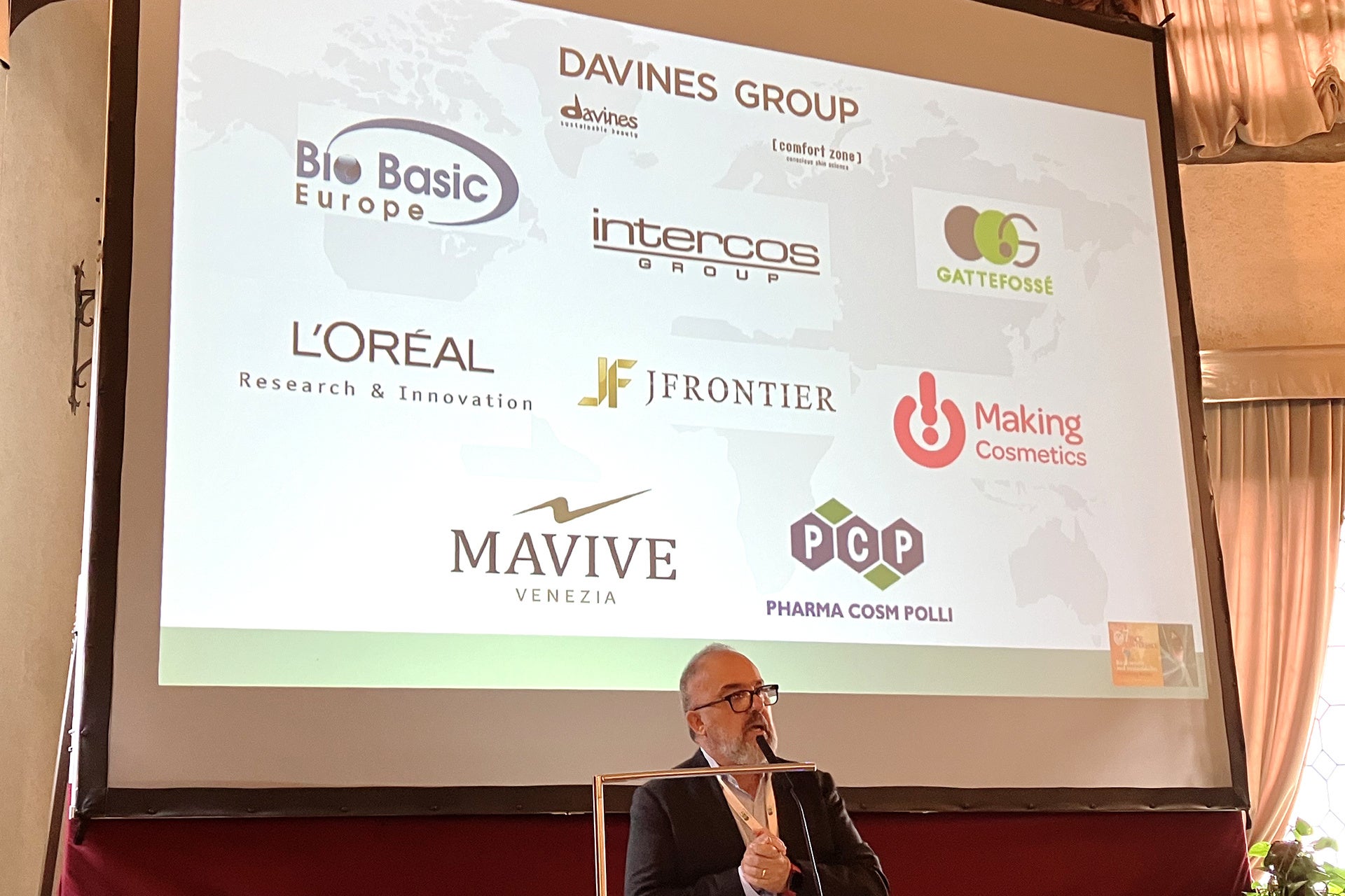 イタリア化粧品技術者会(SICC)主催、ヴェネツィアの「スクオーラ・グランデ・ディ・サン・マルコ」で開催されたIPCE Conferenceで講演