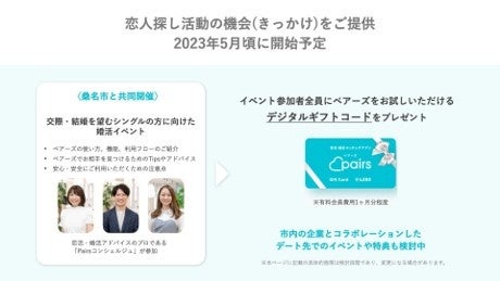 2023年5月頃を目処に市内独身男女向けにイベントを開催し、ペアーズの利用機会を提供