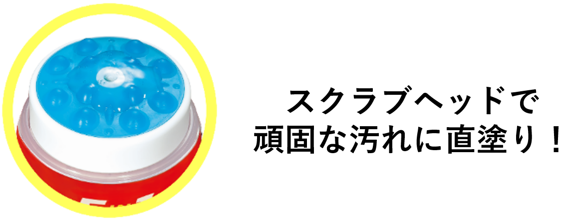 ①ヘッドを汚れに押し当てて、こすってジェルをなじませる