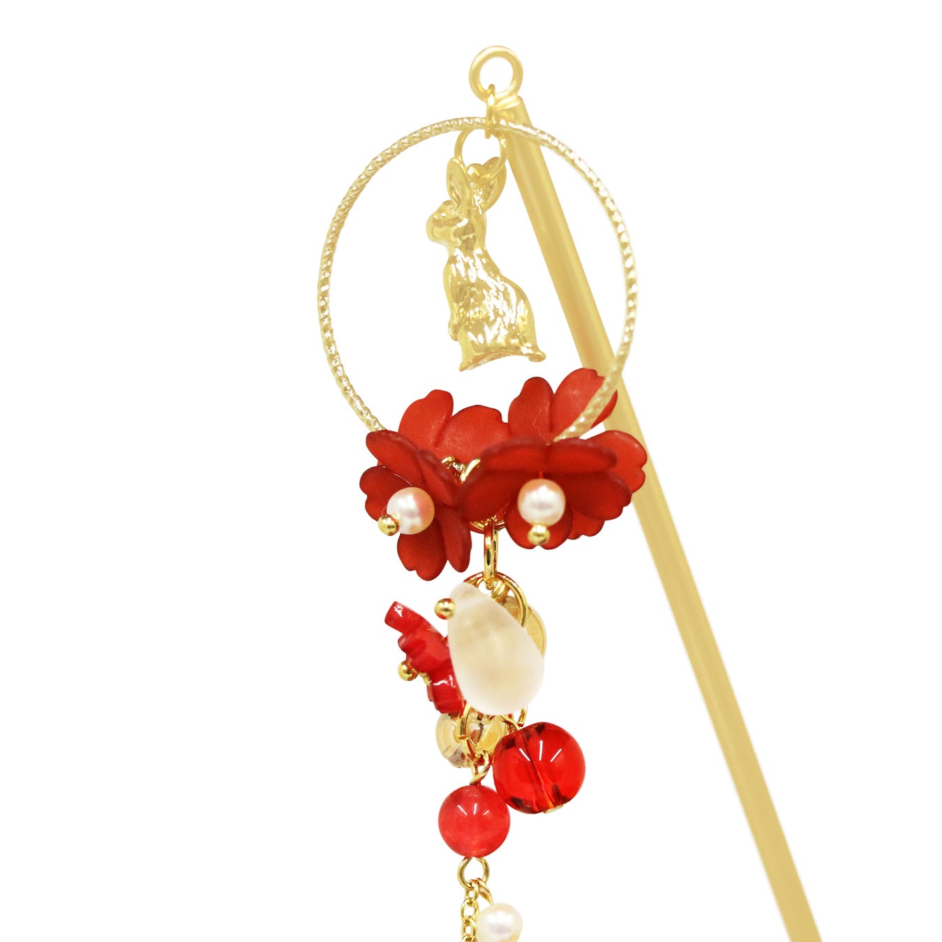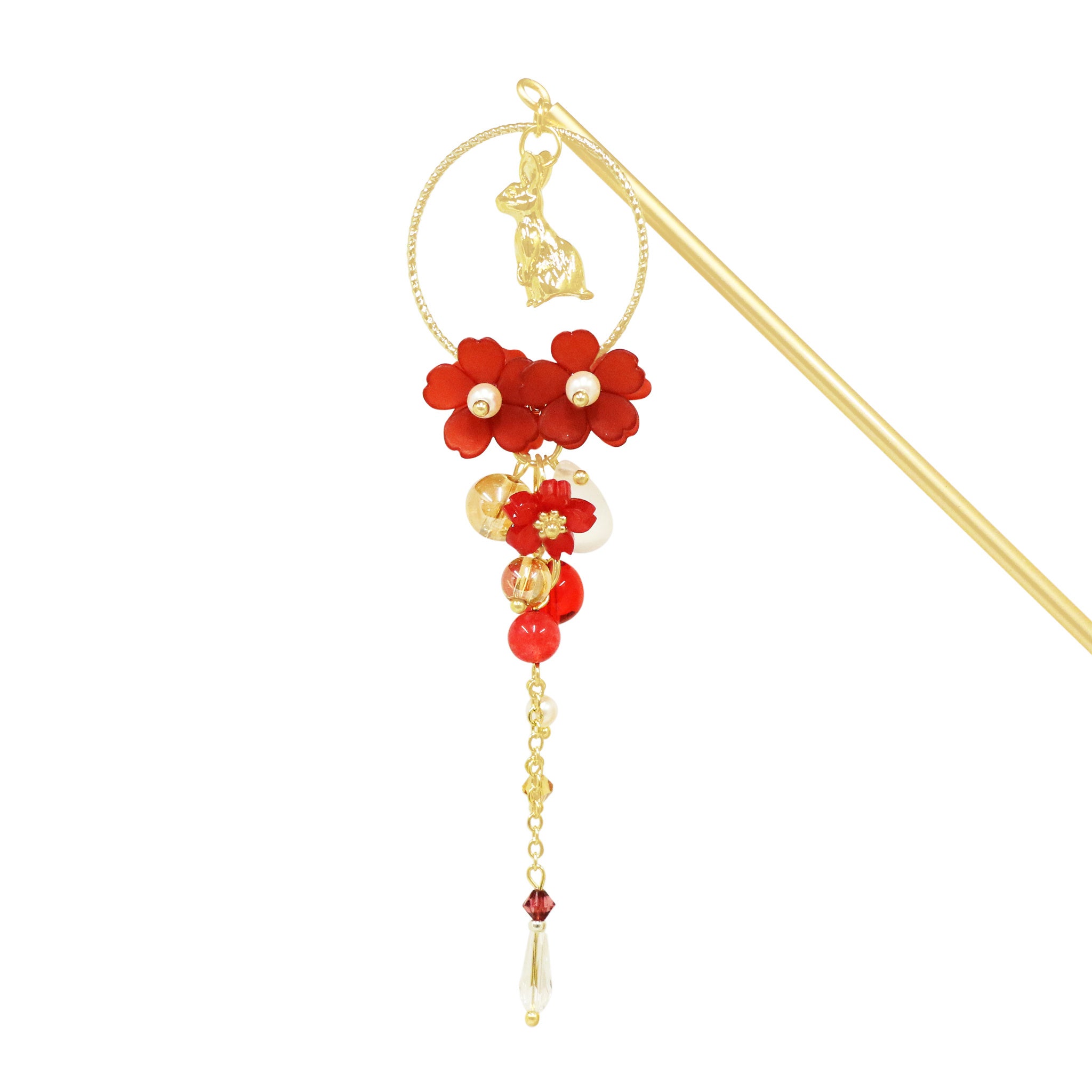 花月兎一本簪 - 紅