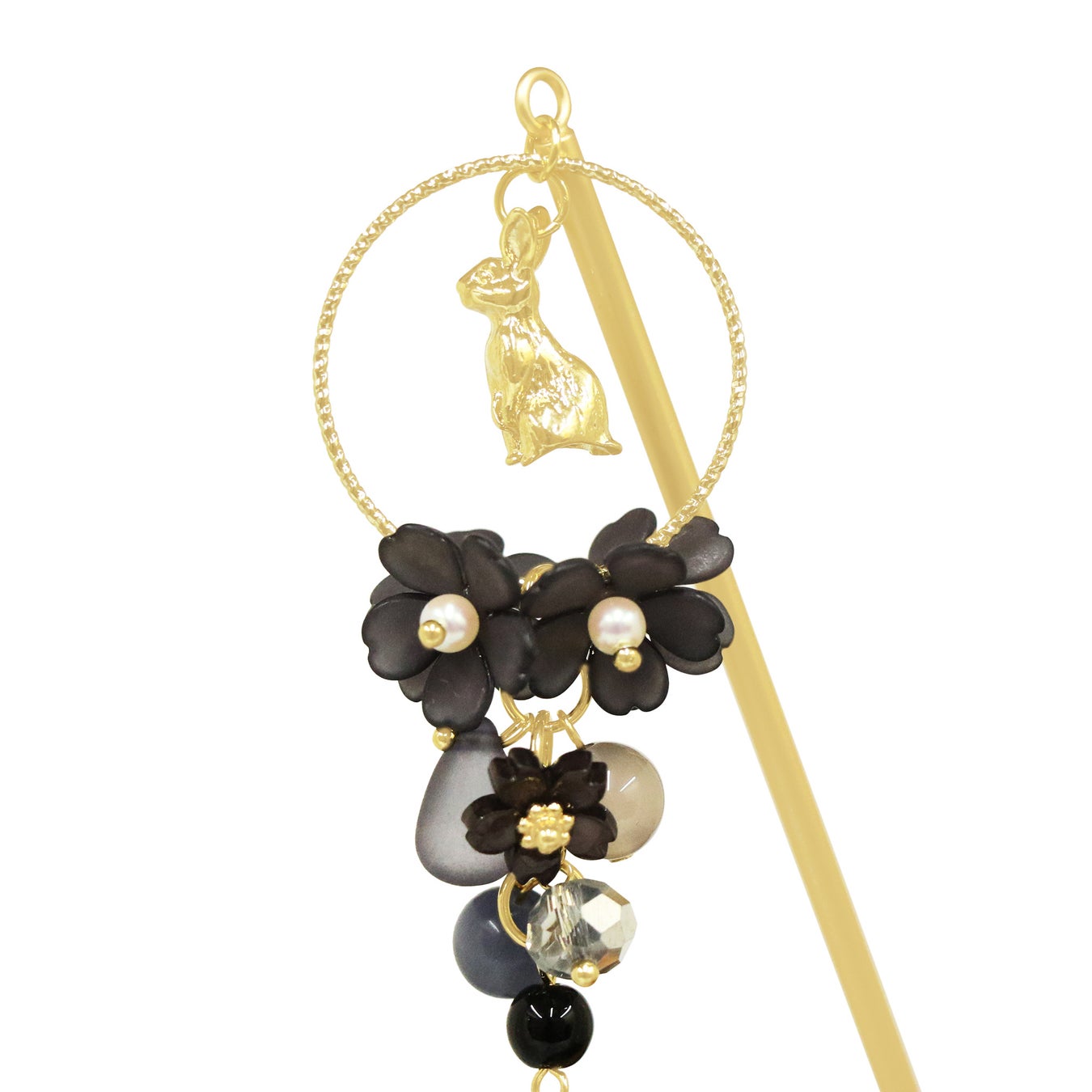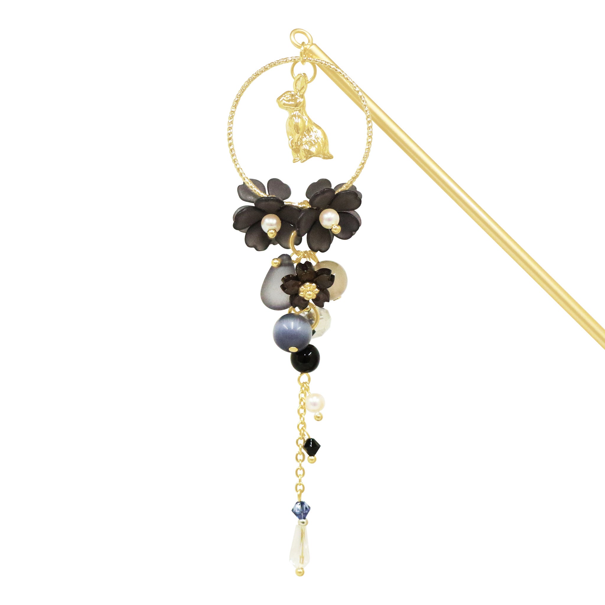 花月兎一本簪 - 黒