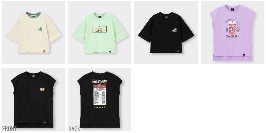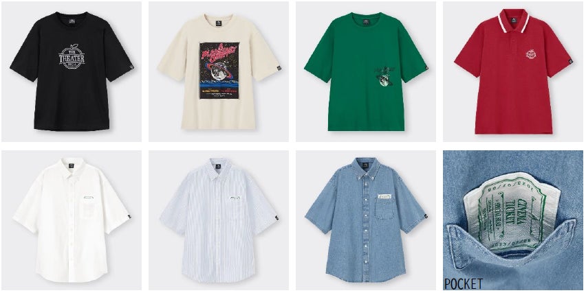 ウィメンズからは、“THE THEATER MGA”のロゴをあしらいオフィシャルグッズをイメージしたTシャツや、バックプリントに上映スケジュール風にシングル曲のタイトルやアルバムのアイコンを並べたノースリーブTなどが登場します。メンズからは、シアターチケットがだまし絵風にあしらわれたポケット付きのシャツや、レッドカーペットの深い赤をイメージしたシアタースタッフのユニフォームをモチーフにしたポロシャツなどが登場します。他にも、グラフィック内にはファンならピンと来るワードやモチーフが随所に散りばめられたアイテムを取り揃えましたので、ぜひデザインの細部にもご注目ください。