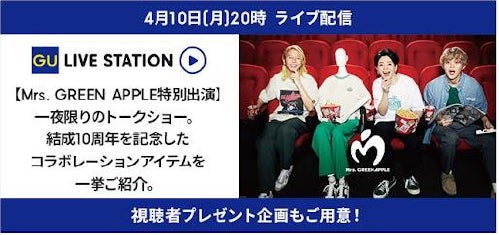 Mrs. GREEN APPLEメンバーから当コレクションについて、「今年結成10周年を迎える僕たちですが、記念すべき年にGUさんとコラボレーションさせていただきました!素晴らしい洋服がたくさん出来上がりましたので、みなさんのもとに届くのが楽しみです!」とのコメントも寄せていただいています。