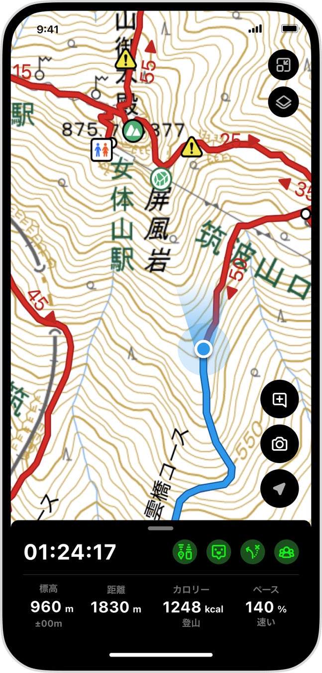 電波が届かない山の中でも、スマートフォンのGPSで現在地と登山ルートがわかる、登山を楽しく安全にするアプリ。山行の軌跡や写真を活動記録として残したり、山の情報収集に活用したり、全国の登山好きと交流したりすることもできる、日本最大の登山・アウトドアプラットフォームです。(2021年8月 登山アプリ利用者数調査 [App Ape調べ])