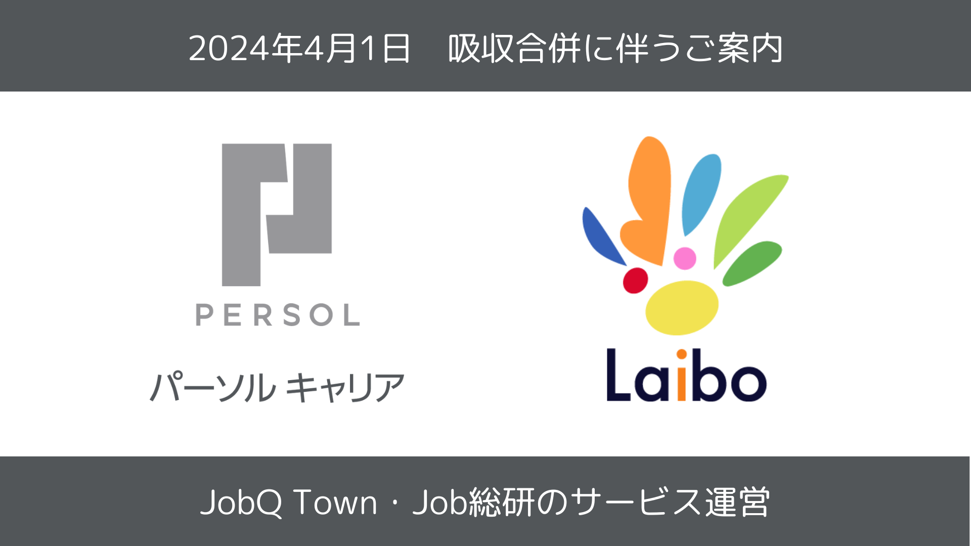 そしてこの度パーソルキャリアを存続会社とした吸収合併により、2024年4月1日の効力発生日から、「JobQ Town」と「Job総研」をパーソルキャリアのサービスとしてリニューアルします。